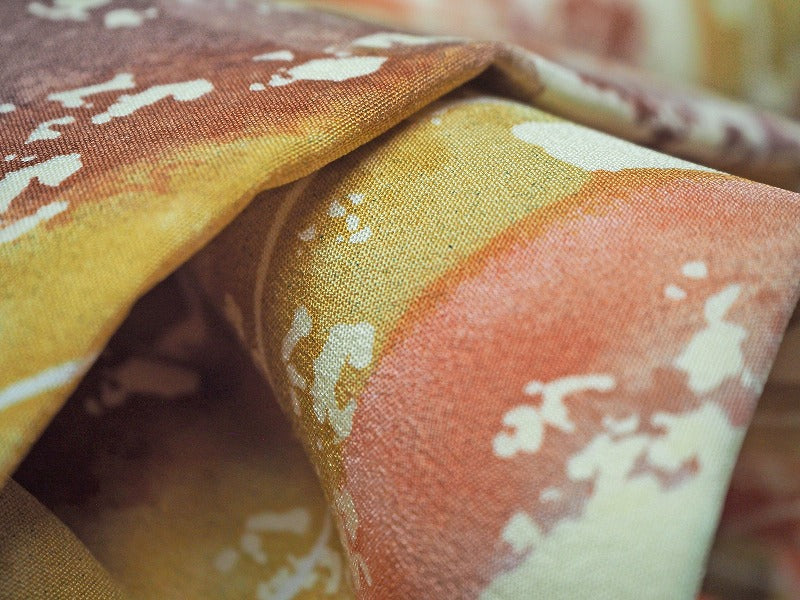 It is a pattern that looks like a landscape of mountains with autumn leaves.